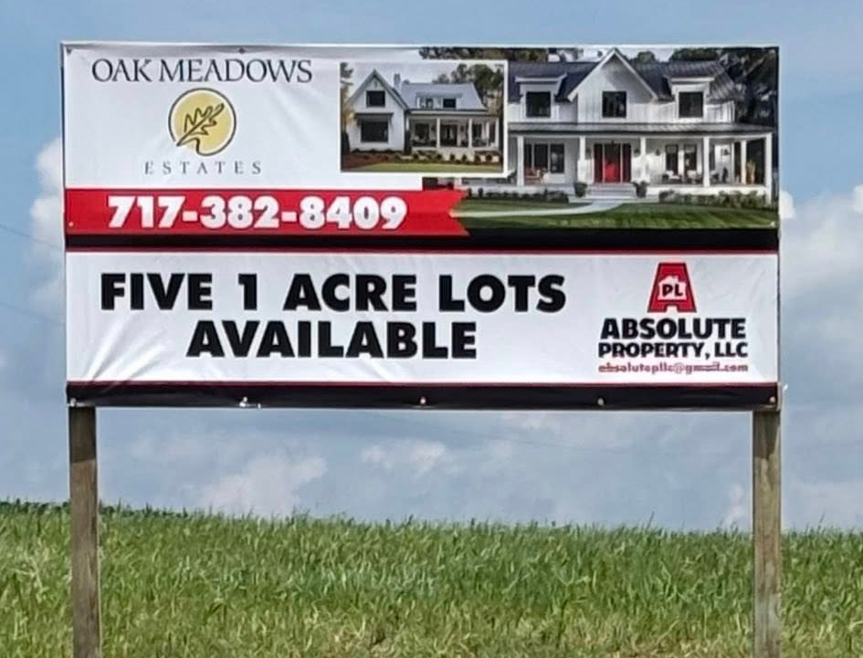Partner with Absolute Property, LLC to build a custom home of 2,000 square feet or more on one of our five beautiful 1-acre lots on Grove Mill Road in Stewartstown, PA.